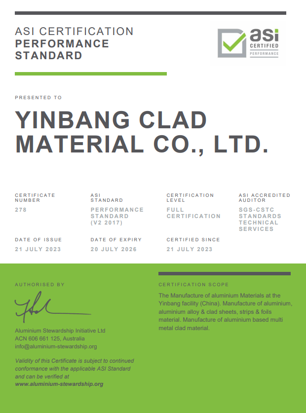 銀邦股份成功通過鋁業(yè)管理倡議ASI績效標(biāo)準(zhǔn)認(rèn)證